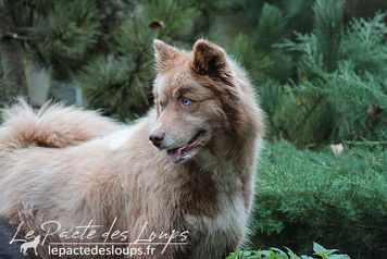 Sa robe rousse s'est beaucoup éclaircie en grandissant, et sa couleur est rare pour un husky. Ses yeux bleus glacier sont perçants et expressifs.